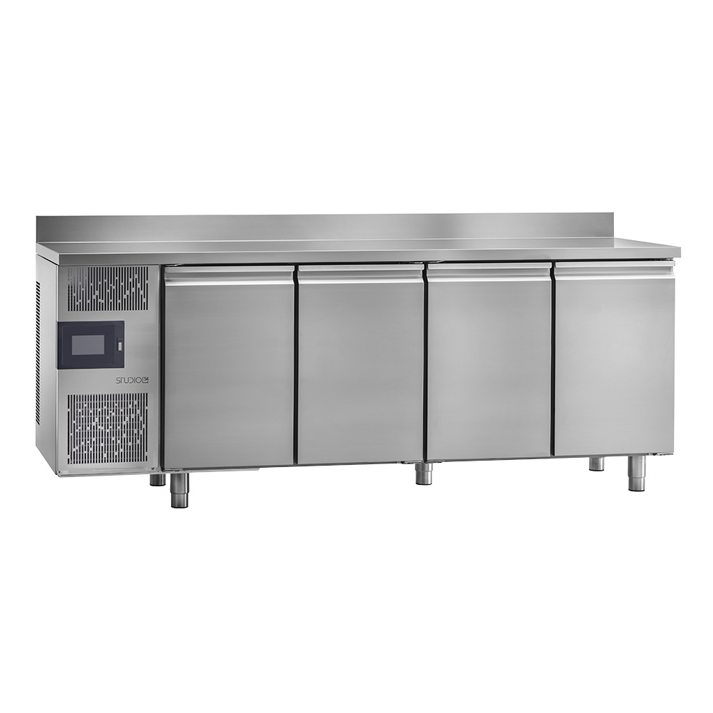 Stainless steel AISI 304 worktop with polyurethane insulation, with or without rear splash-back<br>7" touch screen display for quick and intuitive use<br>Cooling installation with built-in unit or without unit with E-valve<br>Adjustable stainless steel feet (wheels on demand)<br>Insulation 60mm through high density polyurethane-foam without CFC and HCFC<br>External/internal body made in certified AISI 304 stainless steel<br>Table refrigeration system: Ventilated through evaporator with paint protection against corrosion<br>Automatic defrosting: throught simple stop compressor pause on positiv temperature version, throught electrical resistance on negative temperature<br>Automatic evaporation of defrosted water on standard built-in compressor; direct discharge of water on version without built-in compressor<br>Stainless steel full door or set of 2-3 drawers with horizontal stainless steel handle with magnetic seal gasket, door with spring, shock absorbing<br>Internal space fitting: 1 x grid 600x400mm with stainless steel “U” runners pais<br><br>UNIT ON THE RIGHT OR LEFT SIDE: NO SURGHARGE